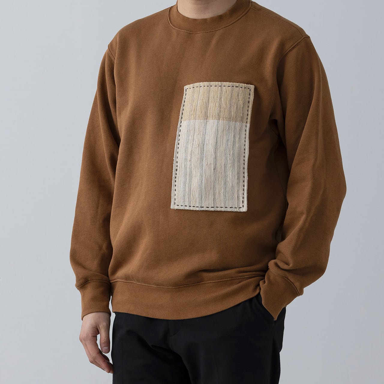 旅館などで使えなくなったシーツを集め、岐阜県東白川村の茶畑で捨てられるお茶の葉を用いて染め直した裂織生地を四角のモジュールで平面構成した「グラフィックスシリーズ」。デザインは北原圭祐(@keisuke_kitahara) ▼PRODUCT INFO ・MATERIAL : 裂織生地(特注) ・COLOR : ブラック ・SIZE : メンズL ・ONLY"ONE" PRODUCT ・WEAVER:河原知子 ▼注意事項 ・本商品は、裂織生地をシャツなどに縫製して制作しているのため、水洗いをすると色が出てきて色移りしてしまう場合があるため、ドライクリーニングを推奨しています。詳しくは、お近くのクリーニング店様に事前相談いただけると幸いです。 ・ご自身で洗濯される場合には、手洗い、もしくは他の製品と一緒に洗わず単独で洗濯ネットに入れて洗ってください。 ・古着を活用しているため、写真ではわかりづらい使用感がある場合もございます。予めご了承のうえで、ご購入いただけると幸いです。