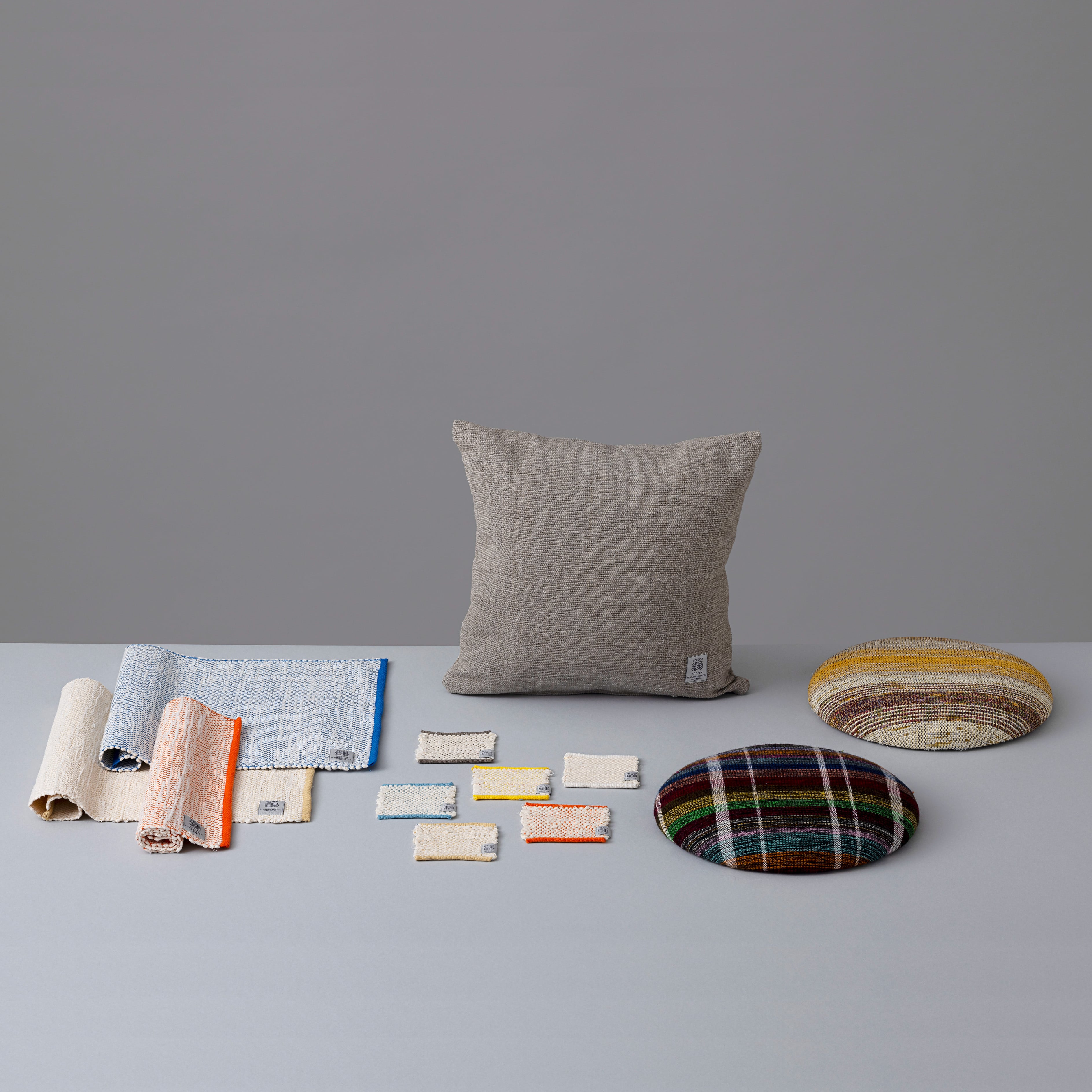 ソファなどの制作過程で大量に出るウレタンや合板の端材を、クッションの中材として活用しました。山梨市の衣川ウレタン加工販売工業所(@kinugawauretan)との共同制作。 ▼PRODUCT INFO ・MATERIAL : 裂織生地の端材 ・SIZE : 直径 約30.0cm ・WEAVER:いろいろな織り手さん ▼注意事項 ・すべて手織りで制作しているため、商品ひとつひとつの仕上がりは少しずつ異なります。あらかじめご認識のうえで、ご購入いただけると幸いです。