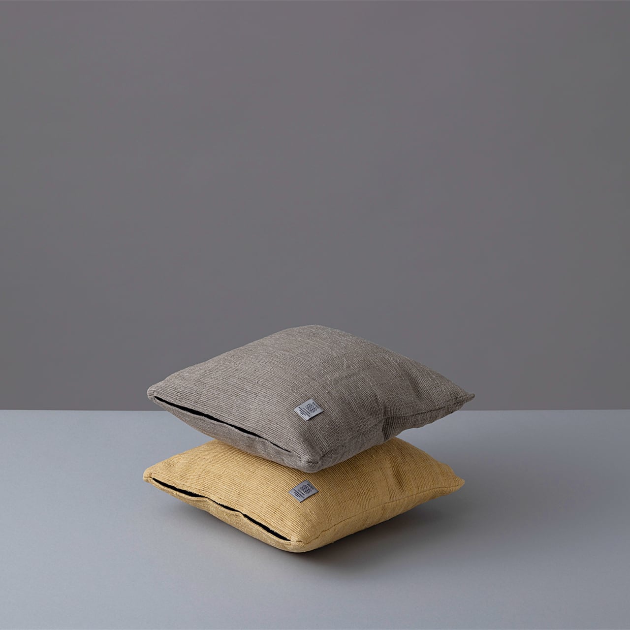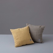 諏訪や茅野の旅館などで使えなくなった「白シーツ」を集め、岐阜県東白川村のお茶畑で捨てられる「お茶の葉」を用いて染め直した裂織生地でつくるクッションです。全て手仕事で制作されたクッションカバーは、量産品には出せない自然な風合いがあります。